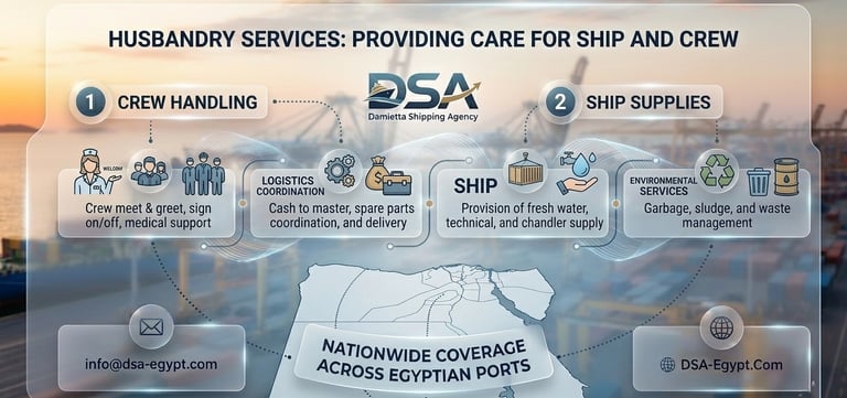 Our husbandry agent services are designed to protect the ship, crew, and owner's interests with seamless coordination and timely delivery of all essential services.